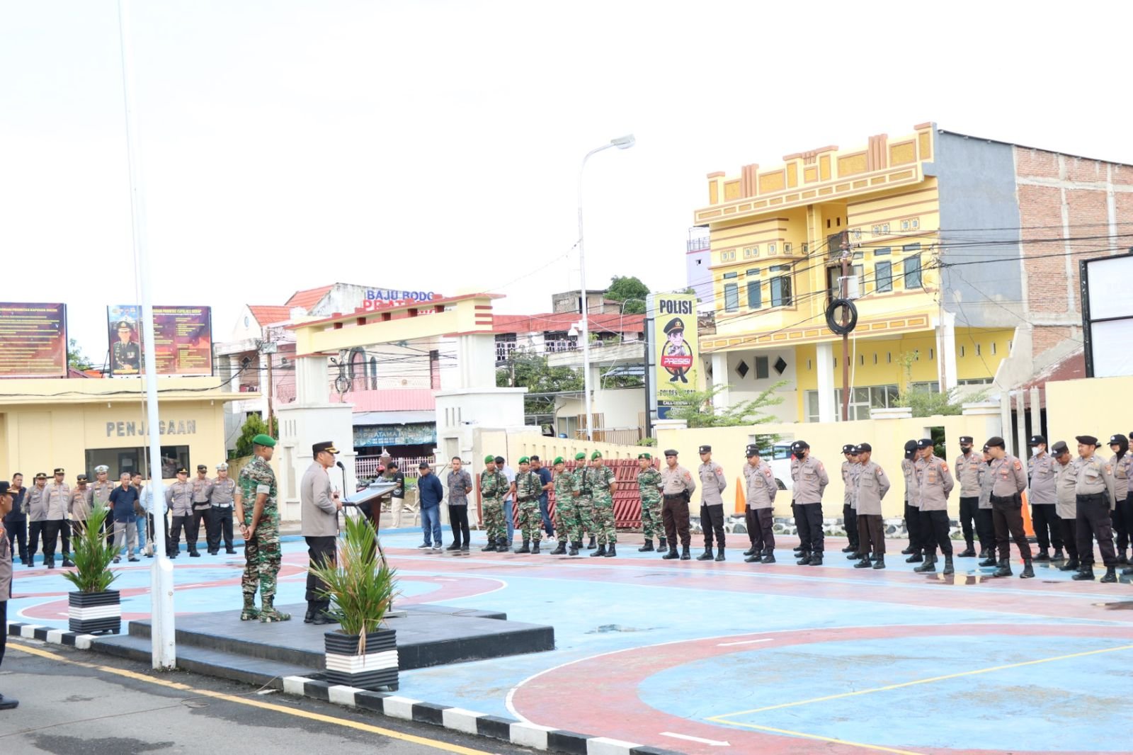 “TNI-Polri merupakan pelindung dan pengayom masyarakat. Maka dari itu kita dipercayakan untuk mengamankan sekaligus mengawal agenda agenda Nasional yang akan melibatkan TNI-Polri. Termasuk agenda segala tahapan Pamilu hingga Pemilu 2024 itu selesai”, Ujar Kapolres.