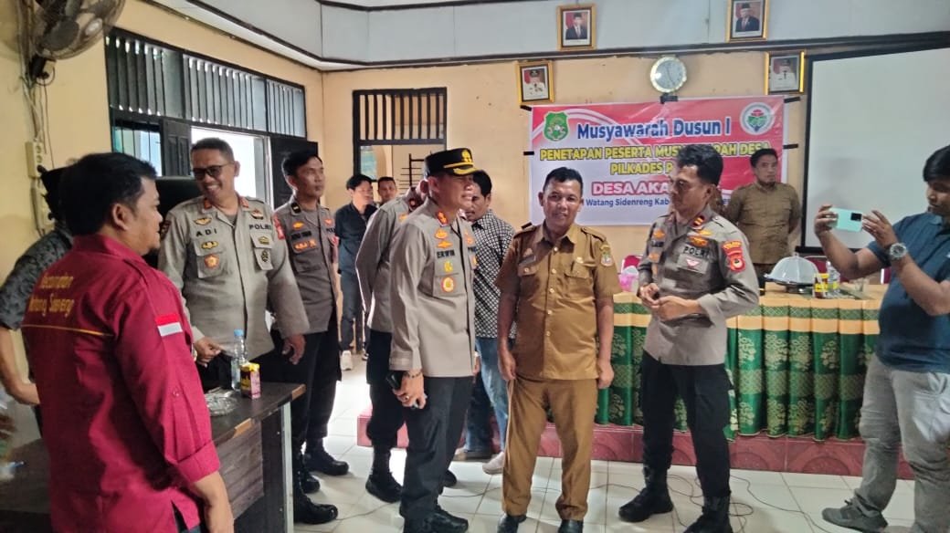 kosongsatunews.com, SIDRAP – Kapolres Sidrap AKBP Erwin Syah,SIK didampingi oleh Waka Polres KOMPOL M.Akib beserta PJU dan Kapolsek Maritengngae turun langsung melakukan pengamanan Musyawarah Pemilihan Kepala Desa Pergantian Antar Waktu (PAW) Desa Aka-Akae, Kec. Watang Sidenreng, Kab. Sidrap. Selasa (2/5/2023).