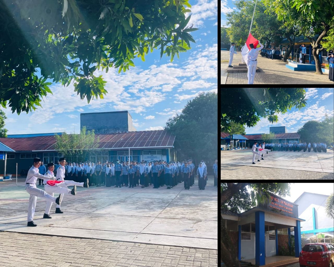 Upacara peringatan Harlah Pancasila berjalan dengan baik. Yang mengibarkan bendera merah putih adalah siswa-siswi yang tergabung paskibra SMPN 24 Makassar.