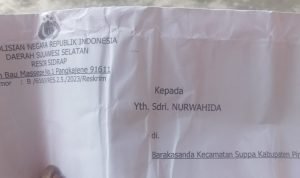 Perempuan berinisial NW (55) seorang warga Barakasanda, Kecamatan Suppa, Kabupaten Pinrang, Sulawesi Selatan. Diduga telah mengabaikan Surat Panggilan Polisi yang sudah 2 pekan lalu pasca dilayangkannya pihak Penyidik Kepolisian Resort Sidenreng Rappang kepada yang bersangkutan