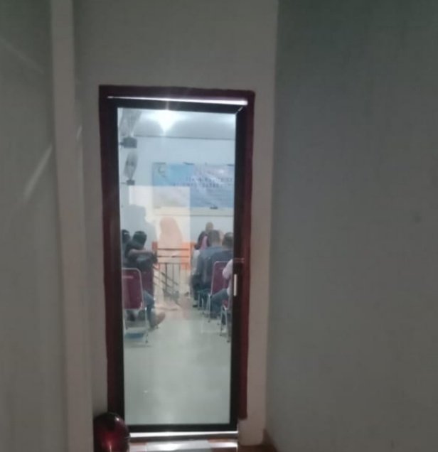 Pintu aula ditutup Panitia Pelaksana Kegiatan saat wartawan hendak mengambil gambar.