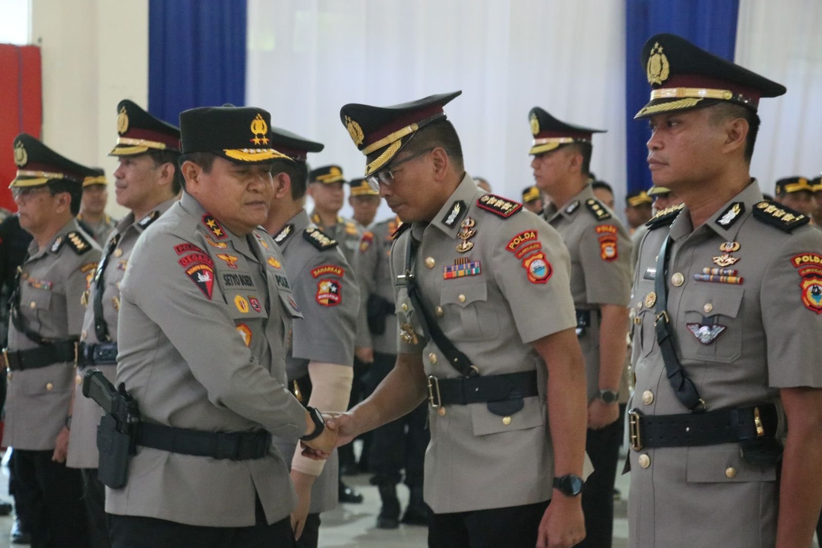 Adapun sejumlah jabatan utama yang diserahterimakan yaitu Dir Intelkam dari Kombes Yudi Hermawan kepada Kombes Pol Hajat Mabrur Bujangga, Dirresnarkoba dari Kombes Pol Dodi Rahmawan kepada Kombes Pol Darmawan Affandi, Dirlantas dari Kombes Pol Faizal kepada Kombes Pol I Made Agus Prasatya, dan Kabidkum dari Kombes Pol Darma Lelepadang kepada Kombes Pol Ade Indrawan.