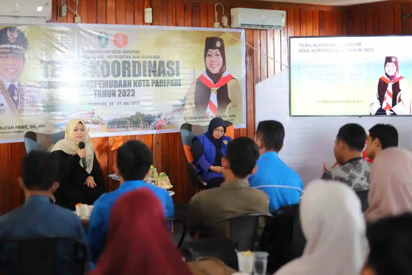 Ketua Tim Penggerak PKK Kota Parepare yang juga Ketua Kwarcab Pramuka Parepare, Hj Erna Rasyid Taufan, menghadiri undangan sebagai Pembicara dalam kegiatan Temu Koordinasi Forum Bina Kepemudaan Kota Parepare Tahun 2023, yang digelar Dinas Kepemudaan, Olahraga, dan Pariwisata (Disporapar) Parepare, di Bukit Amaish Cafe and Resto, Jumat 21 Juli 2023.