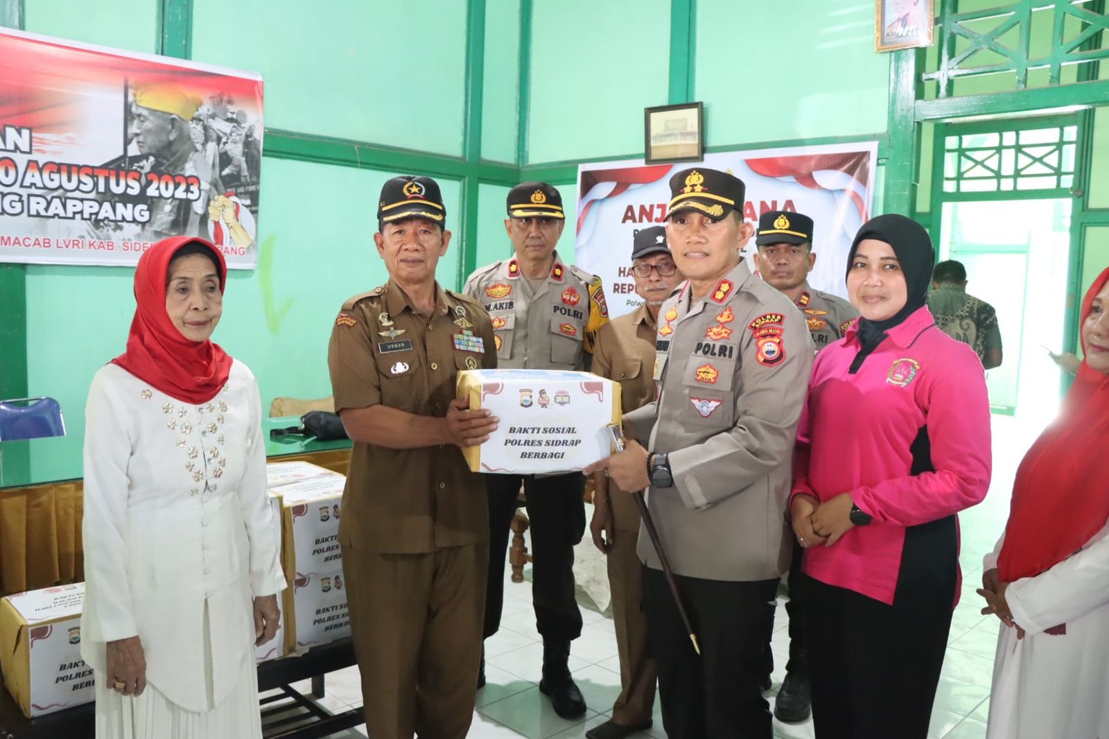 Kegiatan Bakti Sosial yang digelar Kapolres Sidrap bersama Ketua Bhayangkari dalam rangka Hari Ulang Tahun Kemerdekaan Republik Indonesia ke-78, Peringatan Hari Veteran Nasional, Peringatan Hari Jadi Polwan ke-75, Hari Kesatuan Gerak Bhayangkari ke-71 dan Hari Lalu Lintas Bhayangkara ke-68.