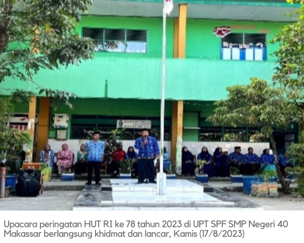 Upacara dihadiri jajaran guru SMPN 40 Makassar, para staf serta tenaga honorer laskar pelangi. Tampak kepala sekolah dan kalangan guru mengenakan baju korpri. Sementara para peserta didik atau siswa siswi mayoritas mengenakan pakaian seragam sekolah.