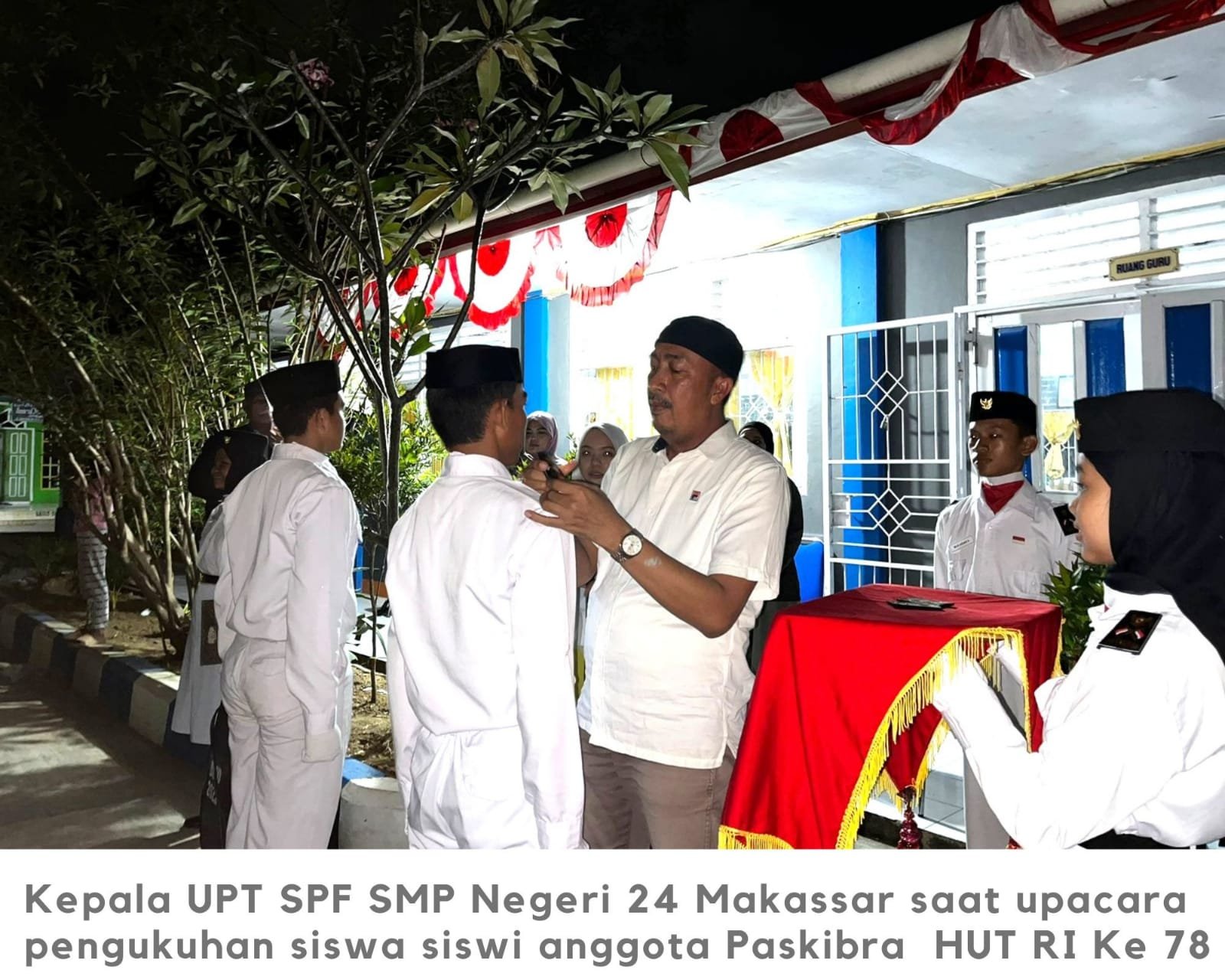 Pengukuhan siswa siswi terbaik yang terpilih menjadi anggota Pasukan Pengibar Bendera (Paskibra) UPT SPF SMP Negeri 24 Makassar pastilah sangat berguna dan patut mendapatkan apresiasi.
