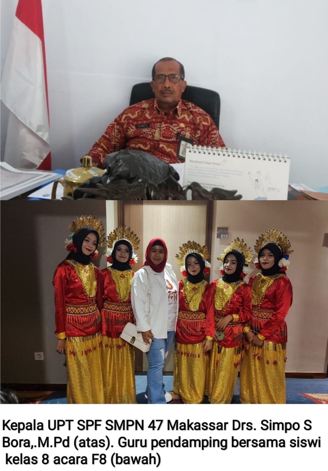 KOSONGSATUNEWS.COM – Satuan pendidikan UPT SPF SMP Negeri 47 Makassar telah sukses berpartisipasi dalam acara Makassar Internasional Eight Festival and Forum atau F8 Makassar. Acara terbesar di kota Makassar ini berlangsung pada 23 – 27 Agustus lalu.