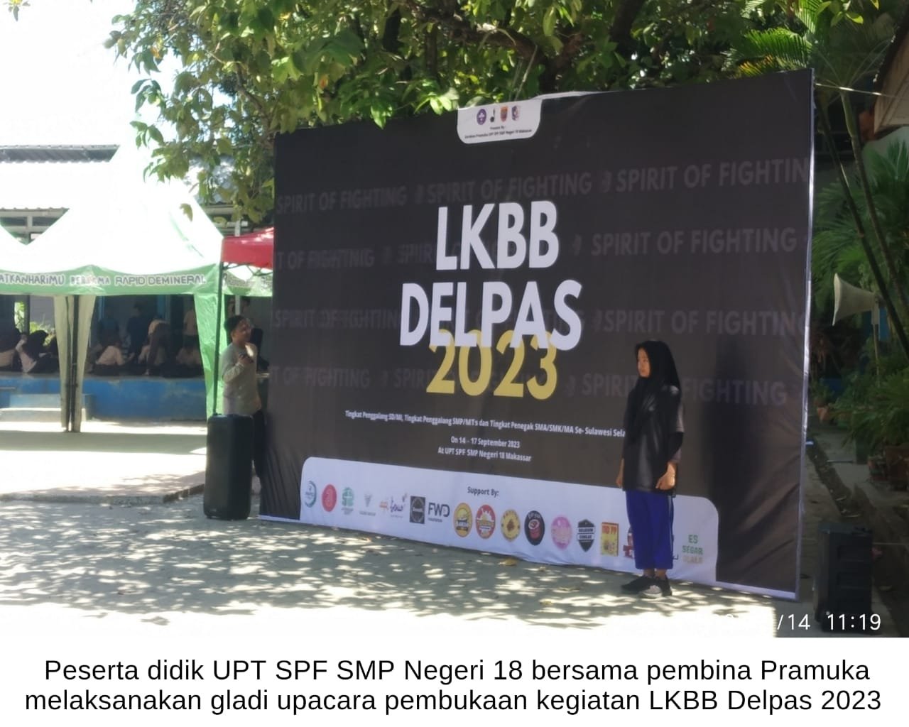 Saat gladi upacara pembukaan, salah seorang alumni selaku pembina Pramuka UPT SPF SMP Negeri 18 mengatakan bahwa peserta LKBB Delpas 2023 tingkat Penggalang se Sulsel diikuti sekitar 40 sekolah mulai SD, SMP hingga SMA.