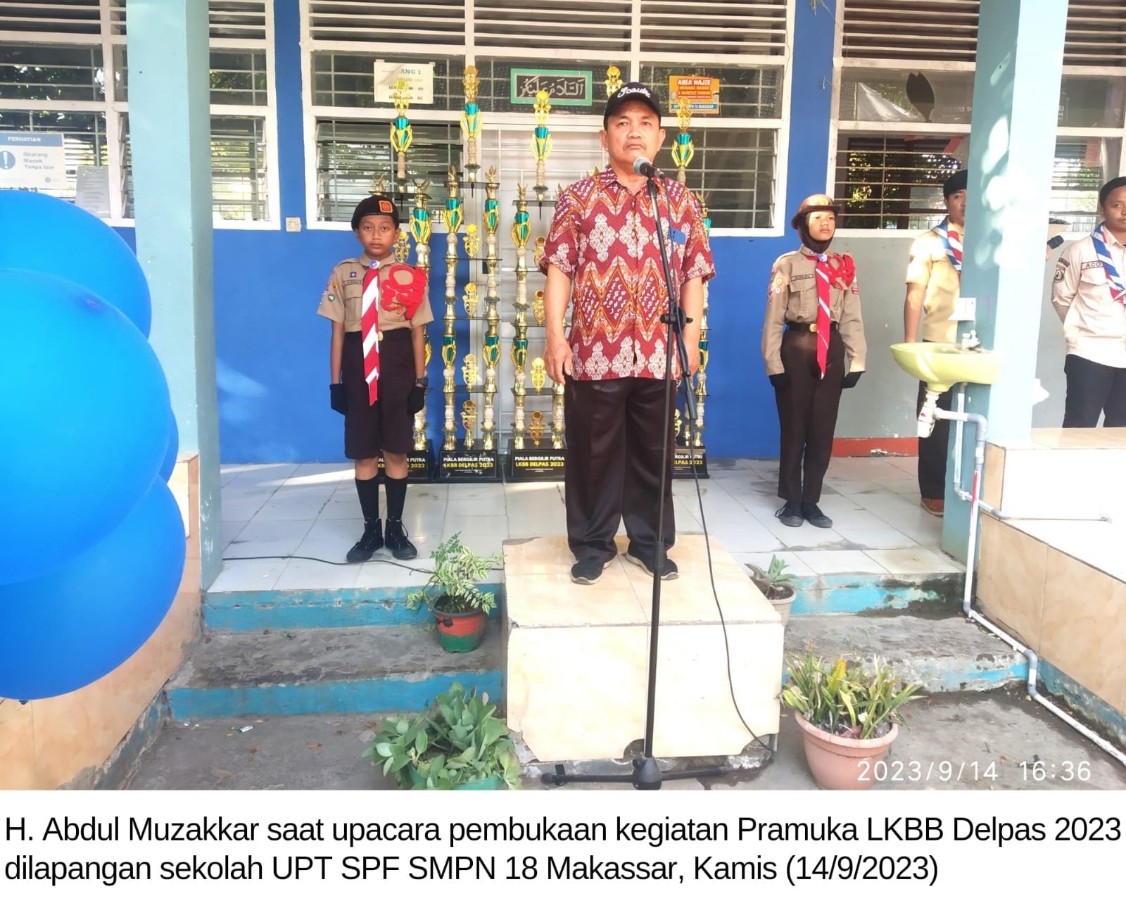 “Kami menyambut gembira dengan adanya kegiatan LKBB ini. Untuk itu kami mengucapkan selamat datang di sekolah kami kepada para peserta yang telah jauh-jauh datang mengikuti LKBB yang di pusatkan di SMP 18 Makassar. Mudah-mudahan dengan adanya kegiatan ini akan meningkatkan pengetahuan dan menumbuhkan keterampilan Pramuka dari SD sampai SMA,” ujarnya, 14 September 2023 di lapangan upacara UPT SPF SMPN 18 Makassar sore hari.