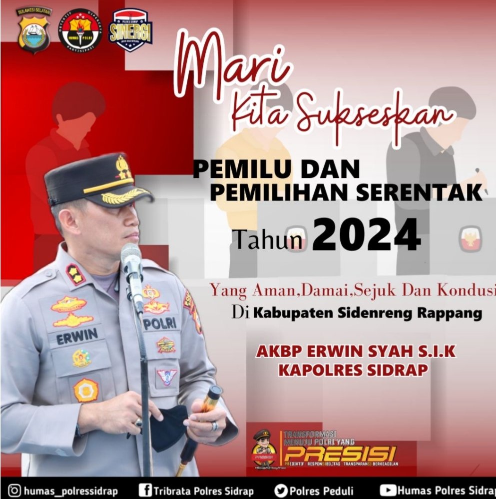 kosongsatunews.com, SIDRAP – Kapolres Sidrap Polda Sulsel AKBP Erwin Syah. S.I.K diampingi Ibu Ketua Bhayangkari Cab. Sidrap Ny. Siska Erwin Syah menghadiri kegiatan Undian Simpedes BRI Cabang Sidrap yang diselenggarakan diarea Taman Kuliner Expose, Jalan Lanto Dg Pasewang Kel. Pangkajene Sidrap. Sabtu (14/10/23) malam.