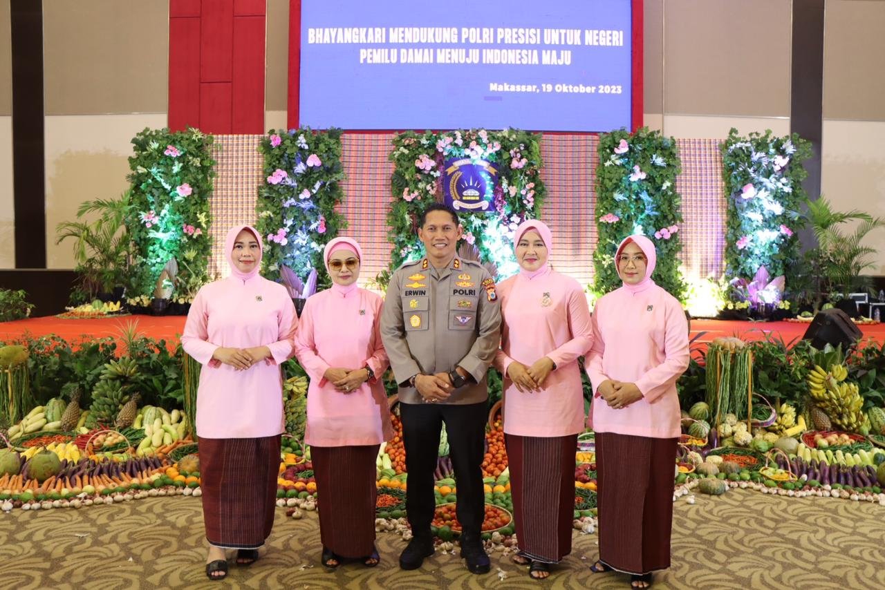 SIDRAP – Kapolres Sidrap AKBP Erwin Syah,S.I.K bersama Ketua Bhayangkari Cabang Sidrap Ny. Siska Erwin Syah menghadiri perayaan peringatan Hari Kesatuan Gerak Bhayangkari ke-71 Tahun yang di gelar di Hotel Dalton Makassar. Kamis (19/10/2023).
