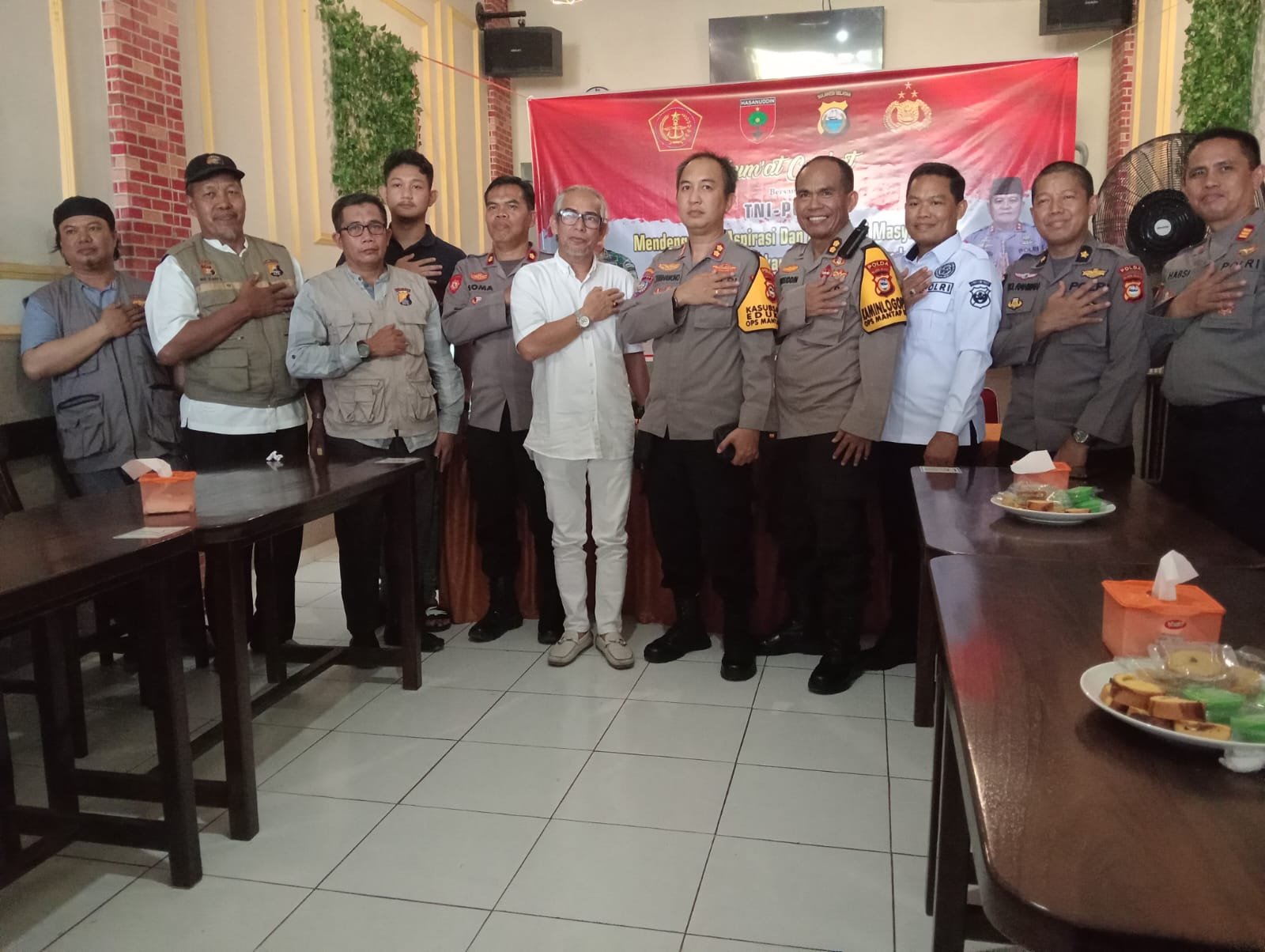 Wadir Binmas dan Perwakilan PJU Polda Sulsel Polda Sulsel mewakili Kapolda Sulsel Terima Aspirasi Warga dalam kegiatan Jumat Curhat di Cafe Dewi Jl. H. Agussalim Wilayah Hukum Polres Gowa Jumat, (20/10)