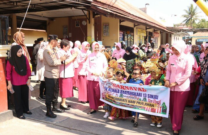 Kapolres Sinjai Akbp Fery Nur Abdulah, S.Ik mengatakan, sangat mengapresiasi kegiatan yang dilaksanakan Murid Taman Kanak- Kanak Bhayangkari dalam rangka memperingati Hari Pahlawan yang ke 78 ini.