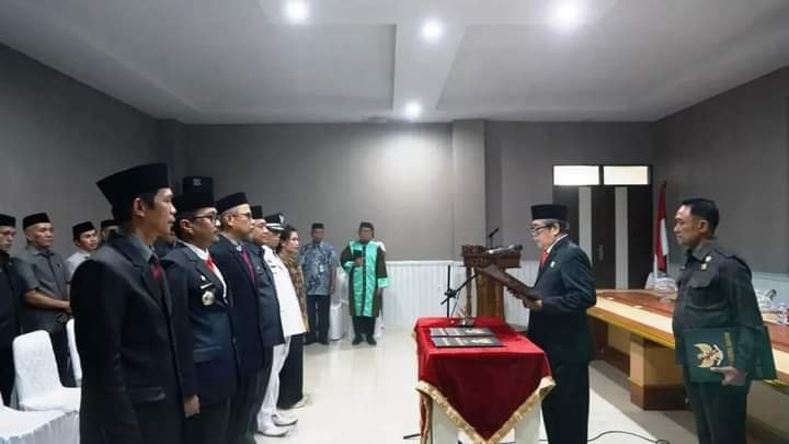 Bupati Sidrap, H. Dollah Mando melantik dan mengambil sumpah tiga kepala organisasi perangkat daerah Jumat (1/12/2023) di Ruang Rapat Pimpinan Lantai III Kantor Bupati Sidrap.