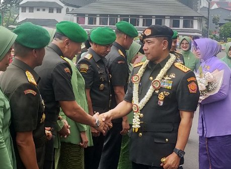 Pangdam XIV/Hasanuddin Mayjen TNI Dr. Totok Imam Santoso, S.I.P., S.Sos., M.Tr. (Han)., didampingi Ketua Persit Kartika Chandra Kirana Ny. Desi Totok Imam, mengucapkan “Selamat dan Sukses atas Pelantikan Jenderal TNI Maruli Simanjuntak, M.Sc., sebagai Kasad”, ketika menghadiri upacara Sertijab di Markas Besar TNI AD (Mabesad) Jakarta Pusat, Jumat, (1/12/2023).