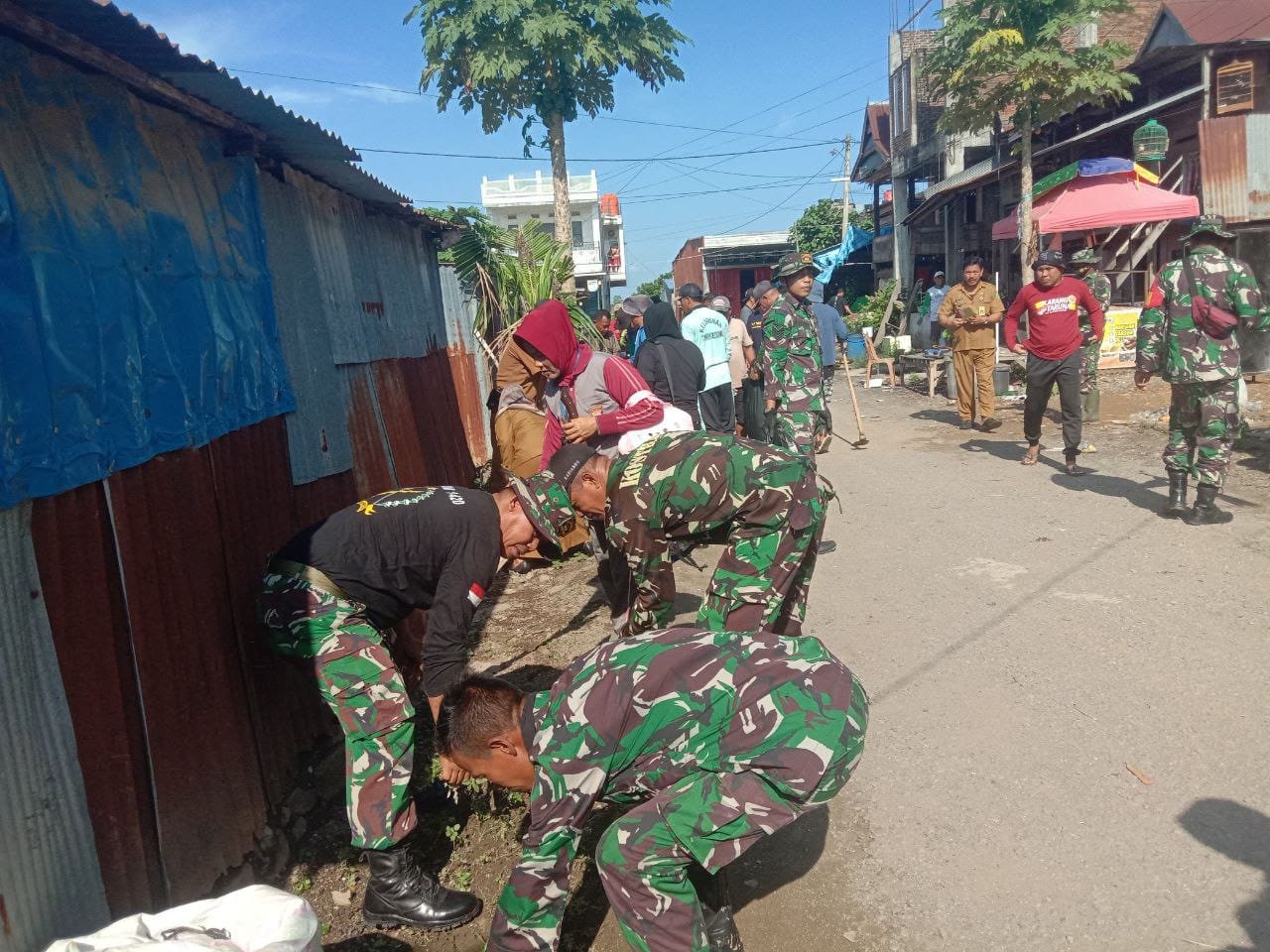 Danramil Dua Pitue Pimpin Warga Karya Bakti Bersihkan Selokan Pasar Tanru Tedong