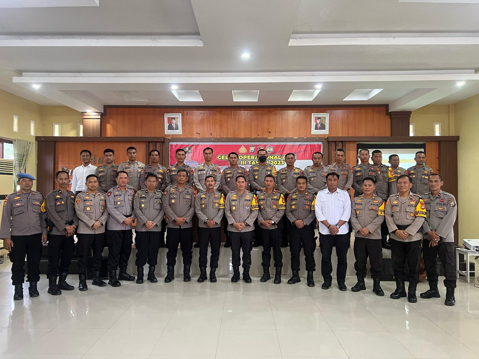 kosongsatunews.com, SIDRAP – Kapolres Sidrap AKBP Erwin Syah. S.I.K., MH memimpin pelaksanaan Gelar Operasional (GO) Triwulan III Tahun 2023 di Aula Parama Satwika Mapolres Sidrap, Kamis (07/12/2023).