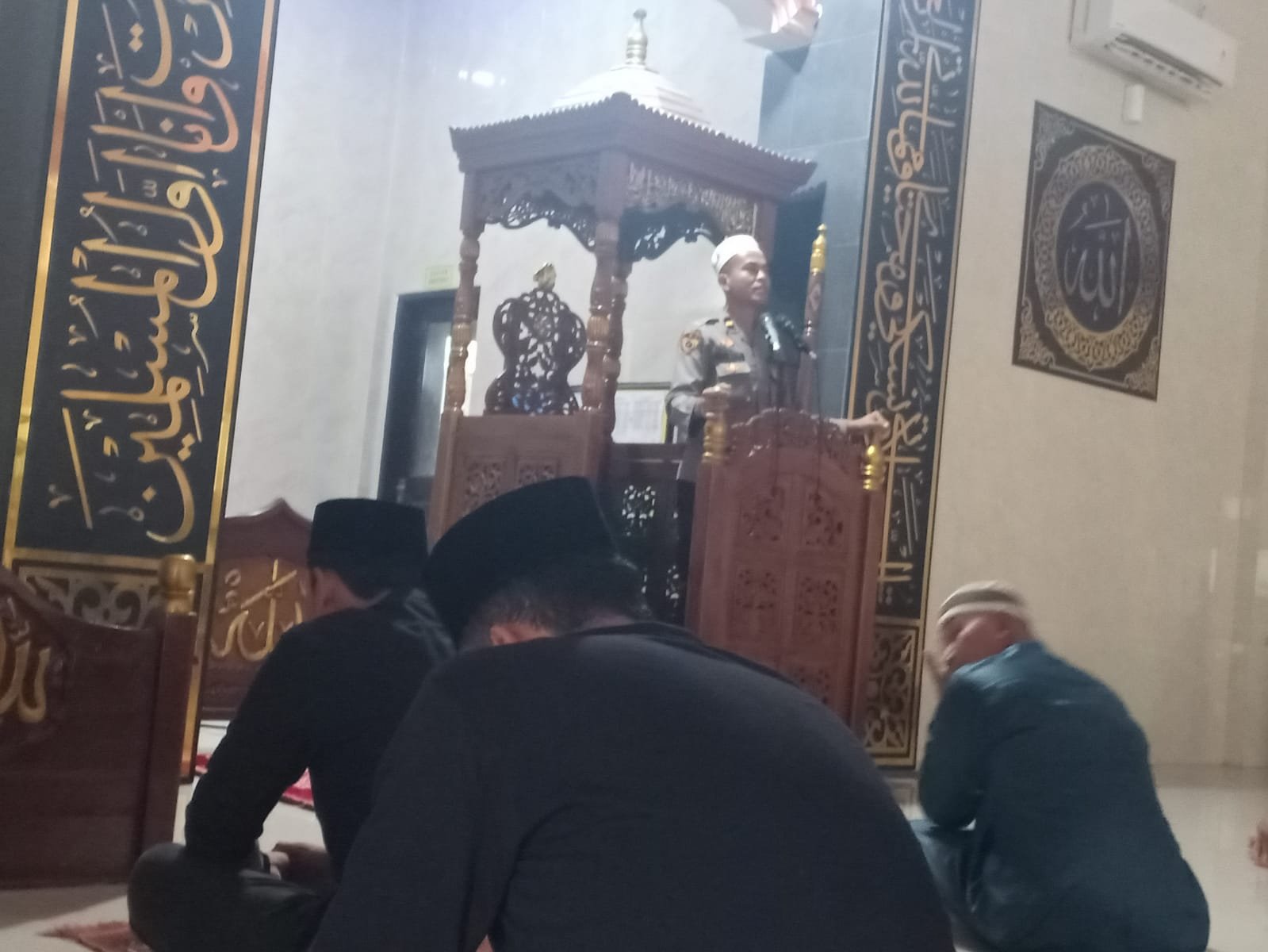 Anggota Satgas Preemtif Subsatgas Binmas OMB Polres Sinjai Ipda Agus Salim menyampaikan kepada jamaah sholat dhuhur tentang pentingnya partisipasi aktif masyarakat dalam menjaga keamanan menjelang Pemilu yang sudah dalam tahapan kampenye.