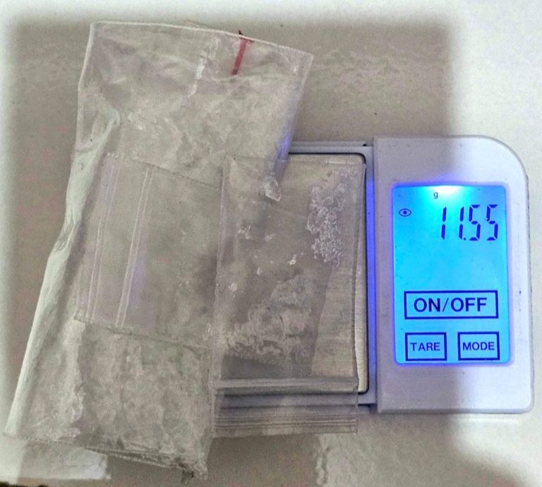Beberapa saat ditunggu, polisi kemudian menyusul masuk kedalam rumah tersangka dan mendapatinya sedang menimbang serbuk kristal diduga zat adiktif methamfetamin.
