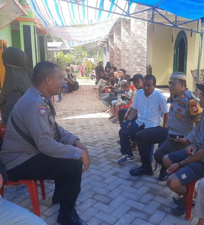 GOWA – Kapolsek Bajeng, AKP H Masjaya SKM MM bersama personil Binmas Desa Lempangan melayat ke rumah duka, di Desa Lempangan, Kecamatan Bajeng.