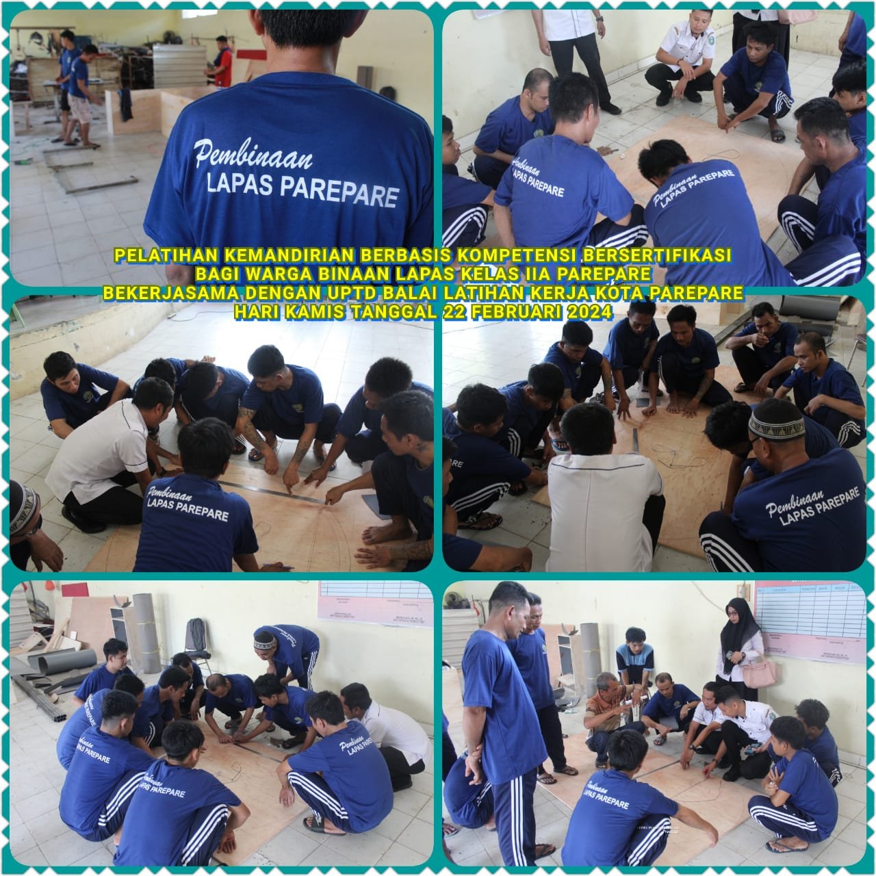 Pelatihan Kemandirian Bersertifikat bagi Warga Binaan yang disediakan oleh Direktorat Jenderal Pemasyarakatan ada 4 (Empat) paket kegiatan. Setiap paket kegiatan pelatihan kemandirian bersertifikasi berjumlah 10 orang berdasarkan DIPA SATKER LAPAS IIA PAREPARE TAHUN 2024. Sementara Kepala Lapas IIA Parepare Totok Budiyanto, Amd.IP, SH telah melakukan koordinasi dan melakukan penandatanganan Perjanjian Kerja Sama (PKS) dengan Dinas Tenaga Kerja dan UMKM Kota Parepare dan Balai Pelatihan Vokasi Dan Produktifitas (BPVP) Pangkajene dan Kepulauan pada bulan Januari 2024. BPVP Pangkep Adalah Lembaga Pelatihan Yang Melatih Dan Membentuk Calon Calon Tenaga Kerja Ataupun Calon Wirausaha Dengan Memberikan Ilmu Pengetahuan Dan Keterampilan Bagi Setiap Siswa/I Yang Dilatih Agar Mampu Menghadapi Kebutuhan Didunia Industri Dan Dunia Usaha. Termasuk bagi Warga Binaan di Lapas IIA Parepare yang diberikan bekal kemampuan dan ketrampilan sesuai dengan UU RI No. 12 Tahun 1995 tentang Pemasyarakatan pasal 3 disebutkan bahwa fungsi Pemasyarakatan adalah menyiapkan warga binaan pemasyarakatan (narapidana, anak didik dan klien pemasyarakatan ) agar dapat berintegrasi secara sehat dengan masyarakat, sehingga dapat berperan kembali sebagai anggota masyarakat.