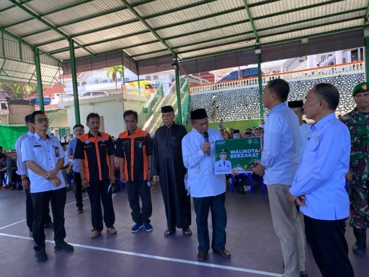 Penjabat Wali Kota Parepare Akbar Ali menjadi pelopor memimpin penyerahan zakat melalui Baznas yang diselenggarakan pada Event Wali Kota Berzakat, Kamis (4/4/2024).