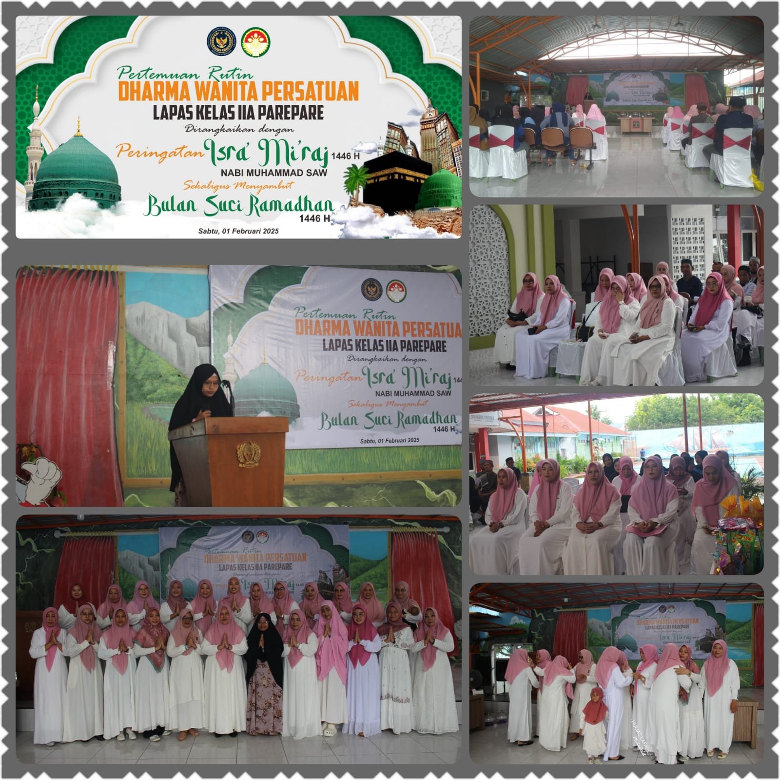 Dalam kesempatan ini Ketua Dharma Wanita Persatuan (DWP) Lapas IIA Parepare Ny. Nurhayati Totok Budiyanto bersama anggota menggelar peringatan Isra’ Mi’raj Nabi Muhammad SAW dan sekaligus menyambut datangnya bulan suci Ramadhan Tahun 1446 H/2025 M. Dalam sambutannya Ny. Nurhayati Totok Budiyanto menyampaikan ucapan terima kasih kepada seluruh pengurus dan anggota DWP Lapas IIA Parepare yang telah hadir dalam kegiatan ini, semoga kehadiran kita semua dapat menambah dan memperkuat ukhuwah Islamiyyah. Dimana tujuan dari peringatan Isra’ Mi’raj adalah untuk mengenang peristiwa penting dalam sejarah Islam, yaitu perjalanan Nabi Muhammad SAW dari Masjidil Haram ke Masjidil Aqsa di Palestina dan perjalanan ke Sidratul Muntaha untuk menerima wahyu perintah sholat lima waktu sehari semalam. Melalui peringatan ini, umat Islam diharapkan dapat memperkuat iman, meningkatkan kecintaan kepada Allah SWT, dan mengambil pelajaran serta inspirasi dari peristiwa tersebut untuk memperbaiki diri dan mendekatkan diri kepada-Nya.