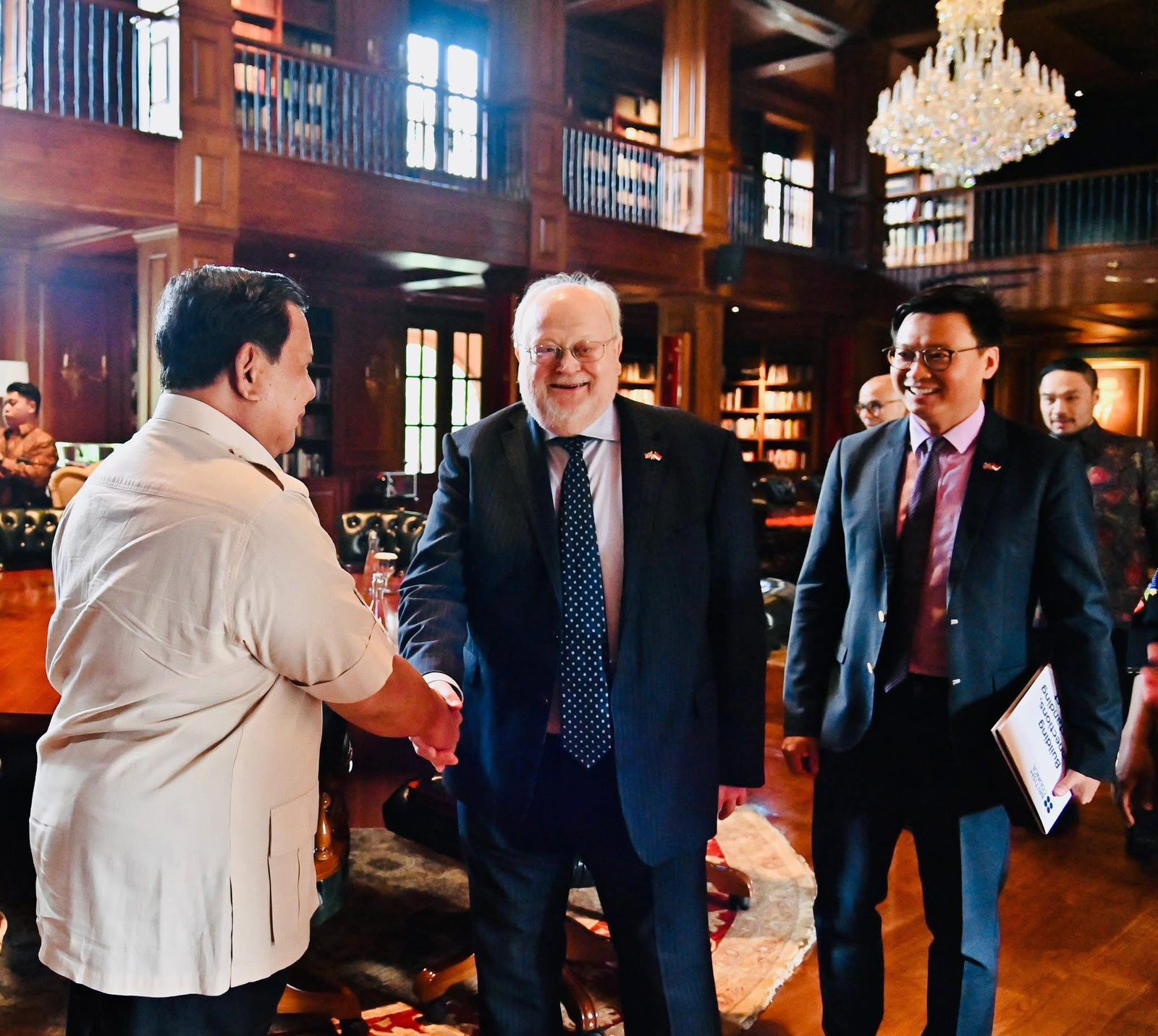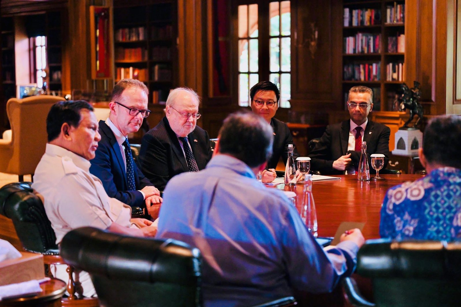Presiden Prabowo Subianto menerima kunjungan Utusan Khusus Perdana Menteri Inggris Urusan Pendidikan, Bapak Prof. Sir Steve Smith, Duta Besar Inggris untuk Indonesia, Bapak Dominic Jermey, dan perwakilan dari Russel Group, sebuah jaringan dari 24 universitas terbaik di Inggris Raya, pada Jumat sore, 30 Mei 2025, di kediaman pribadinya di Hambalang, Kabupaten Bogor, Jawa Barat.