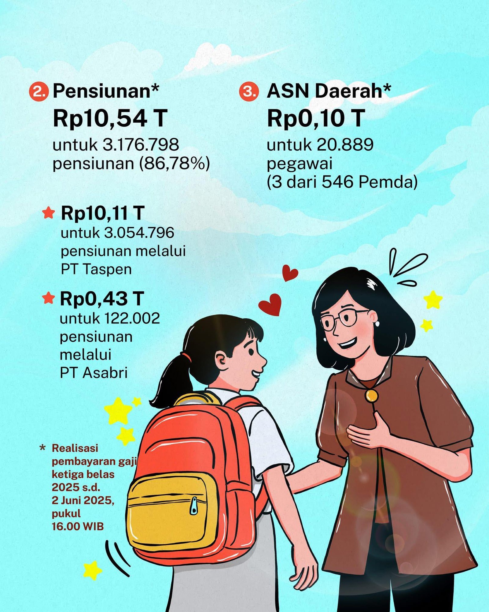 Gaji ke-13 tahun ini mulai dibayarkan tanggal 2 Juni 2025 berdasarkan PP Nomor 11 Tahun 2025 yang telah ditandatangani Presiden @prabowo.