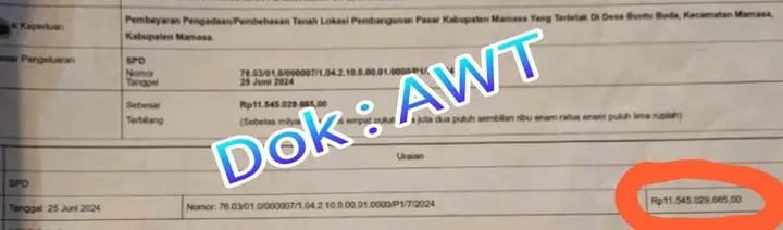 Dugaan Penggelembungan Dana Pengadaan Tanah Pasar Mamasa Jadi Sorotan Publik