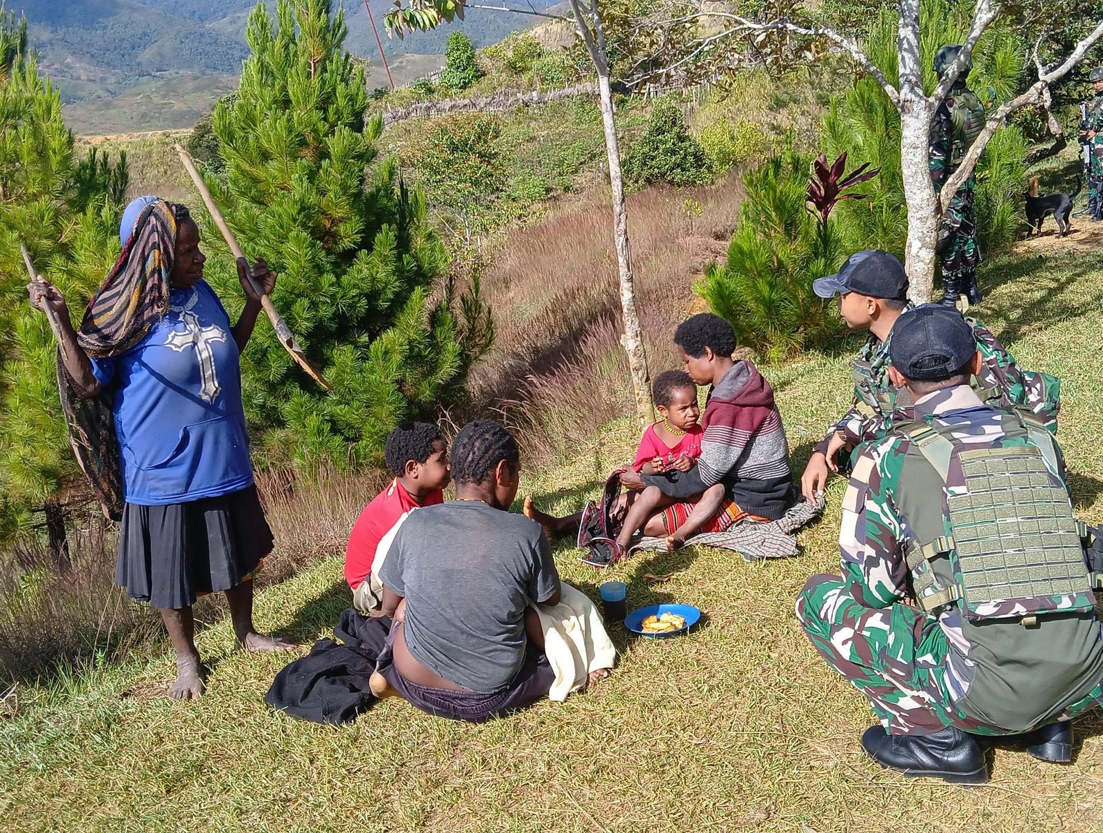 Selain melaksanakan komunikasi Sosial personil Pos Napua juga memberikan bantuan berupa sembako dan alat tulis kepada warga yang membutuhkan yang sekiranya dapat membantu mereka.