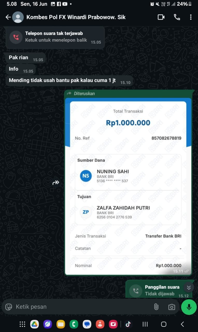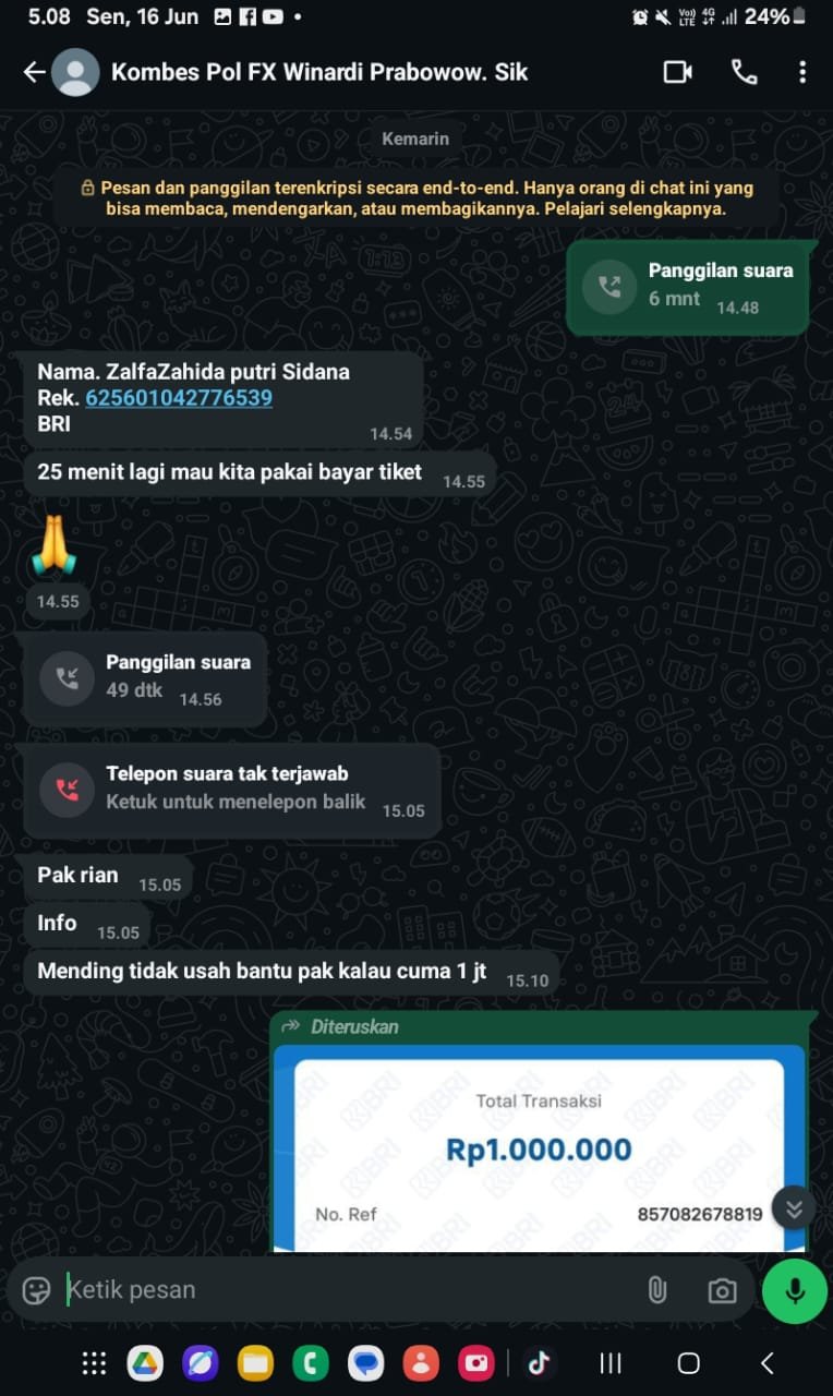 Tidak mungkin seorang Perwira Menengah Polisi melakukan cara cara tidak terpuji seperti itu. Itu penipuan yang di lakukan oleh orang orang yang tidak bertanggung jawab. Karena nomor wa Direskimsus Polda Sulut Kombes FX.Winardi bukan itu tegas Stevenson.