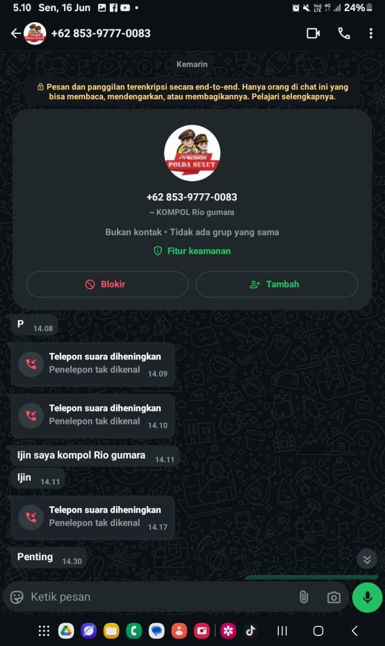 Bukan cuma itu tapi nama Kompol Rio Gumara yang mengaku salah satu Anggota Polisi dengan jabatan Kasubdit Tipidter Polda Sulut, digunakan lagi oleh seseorang dalam nama kontak Whatsap untuk bekerjasama melakukan pemerasan. Dengan modus Pihak Polda Sulut akan melakukan Operasi besar besaran dalam waktu dekat ini, terhadap semua Tambang Galian C Ilegal, di daerah Bolaang Mongodow Raya.