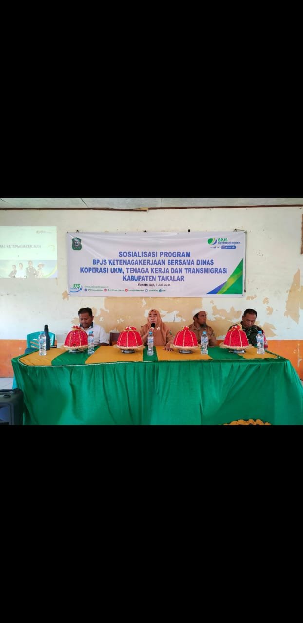 Di tempat yang sama Mappaselleng.SE.MM kepala seksi penyiapan pembangunan pemukiman transmigrasi Dinas UMKM Ketenagakerjaan & Transmigrasi Kabupaten Takalar, mendampingi Kadis UMKM Ketenagakerjaan dan Transmigrasi menyampaikan, bahwa Kegiatan ini merupakan wujud nyata kepedulian Pemerintah agar masyarakat pekerja bisa mendapatkan hak Jaminan Sosialnya, dan Sosialisasi ini tentunya sebagaimana yang diatur dalam UU BPJS Ketenagakerjaan, atau Undang-Undang Nomor 24 Tahun 2011 tentang Badan Penyelenggara Jaminan Sosial (BPJS), yang mengatur tentang pembentukan BPJS Ketenagakerjaan sebagai badan hukum publik yang menyelenggarakan program jaminan sosial ketenagakerjaan bagi seluruh pekerja di Indonesia,” terangnya.