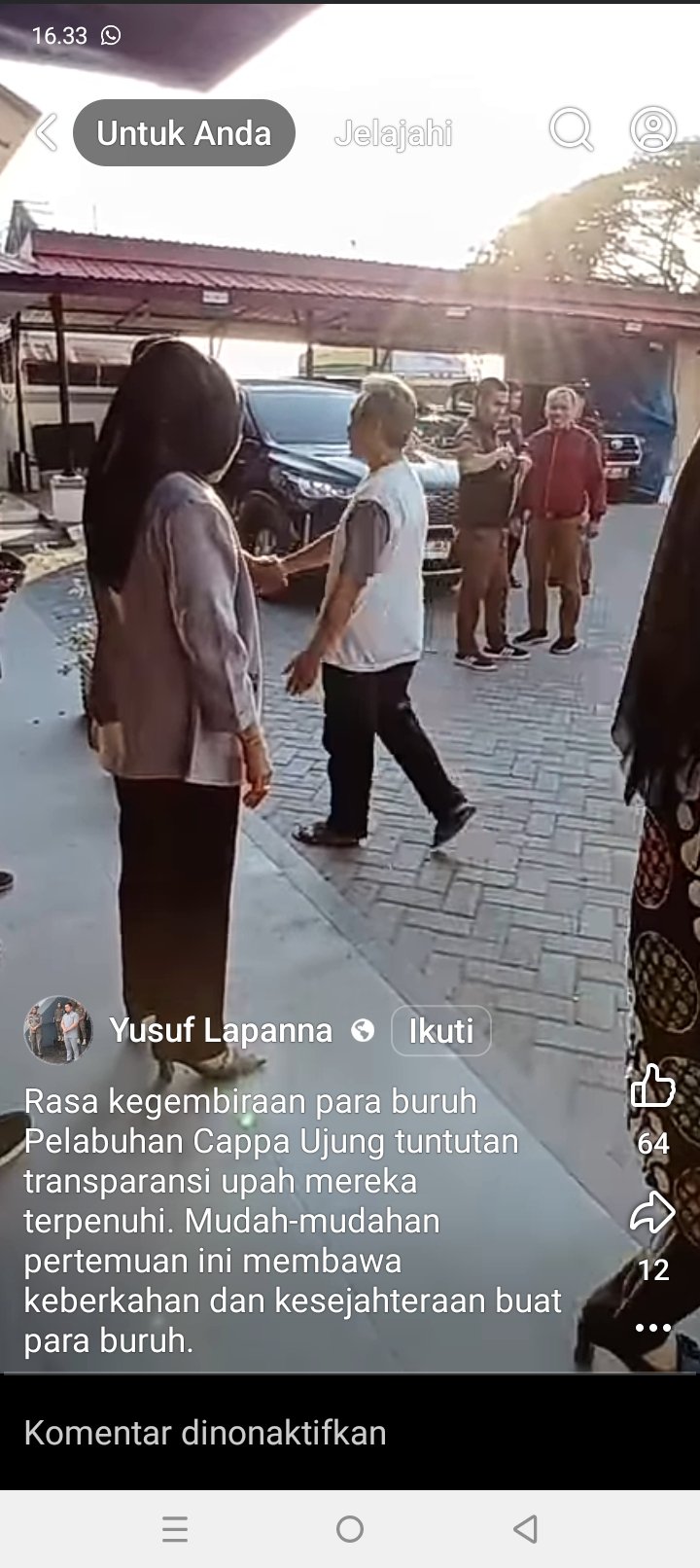 Dalam unggahan tersebut, tampak sejumlah buruh pelabuhan bersalaman dengan Yusuf Lapanna dan pegawai dari Kantor Syahbandar Otoritas Pelabuhan (KSOP) Parepare, yang menandakan tercapainya kesepakatan antara buruh dan mandor.