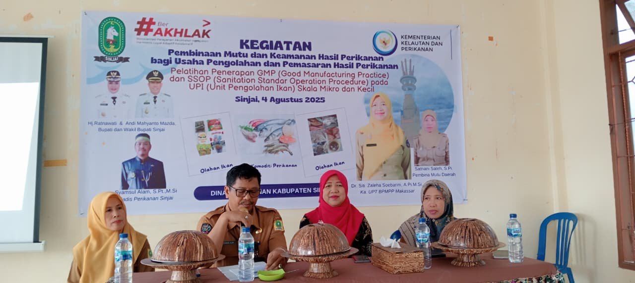 Dinas Perikanan Kabupaten Sinjai menggelar pelatihan penerapan Standar Kelayakan Pengolahan (Good Manufacturing Practices/GMP dan Standard Sanitation Operating Procedure/SSOP) bagi Unit Pengolahan Ikan (UPI) skala mikro dan kecil.