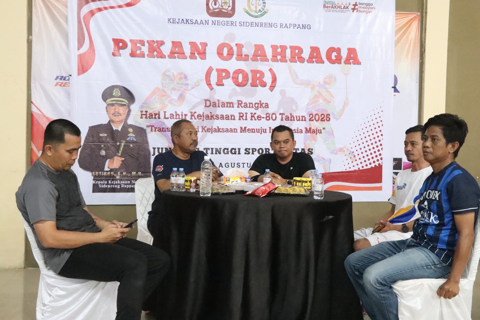 KOSONGSATUNEWS.COM, SIDRAP, – Dalam rangka menyemarakkan Hari Ulang Tahun (HUT) Kejaksaan Republik Indonesia ke-80, Kejaksaan Negeri (Kejari) Sidrap menggelar Pekan Olahraga yang berlangsung meriah di Gedung Masyarakat Pangkajene, Jumat (29/8/25).