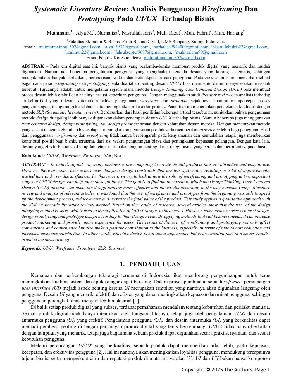 Adapun mahasiswa yang terlibat dalam publikasi ini adalah Muthmaina, Alya M, Nurhalisa, Nasrullah Idris, Muh. Rizal, Muh. Fahrul, dan Muh. Harlang. Keterlibatan mereka dalam penelitian dan penulisan artikel ilmiah menjadi bukti nyata kualitas akademik sekaligus komitmen Prodi Bisnis Digital dalam melahirkan karya-karya yang berdaya saing.