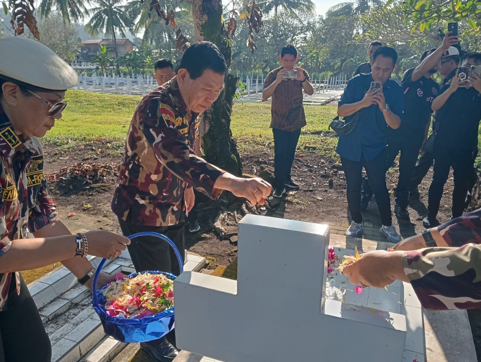 MANADO — Dalam rangka memperingati HUT GM FKPPI ke 47, pimpinan dan jajaran GM FKPPI seSulut yang dikomandani oleh Ketua Victor Mailangkay SH.MH yang juga Wakil Gubernur Sulut, berziarah ke Taman Makam Pahlawan Kairagi pada hari Jumat Pagi 12/09/2025.