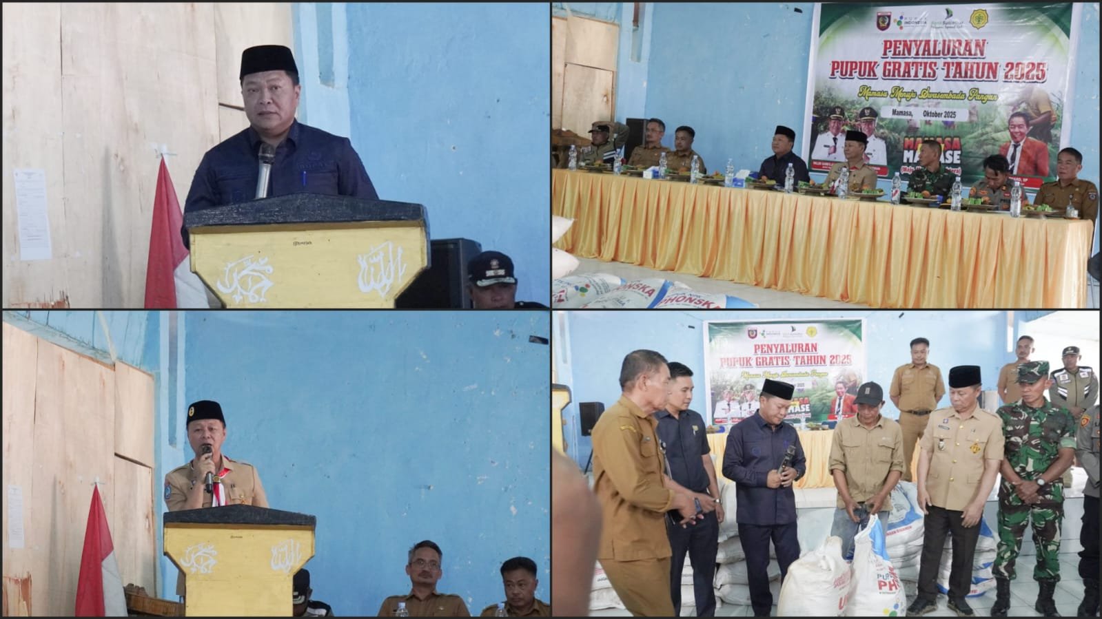 Kegiatan penyaluran pupuk gratis kepada kelompok-kelompok tani di 5 kecamatan tersebut dipusatkan di Kota Mambi, Selasa 7/10/2025.