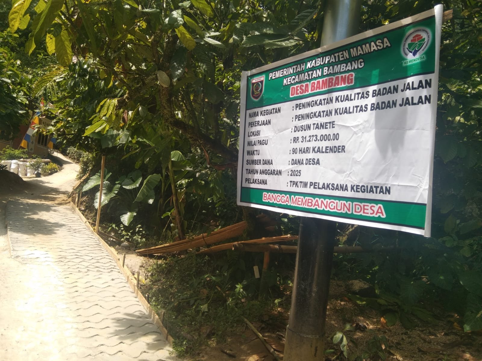 Proyek Jalan Desa Bambang Diduga Bermasalah, Warga Pertanyakan Penggunaan Dana ADD Rp31 Juta