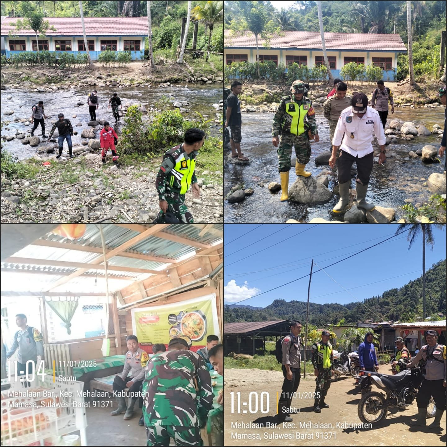 MAMASA — Personel Bhabinkamtibmas Polsek Mambi Polres Mamasa bersama unsur TNI dan Vertical Rescue Indonesia melaksanakan kegiatan peninjauan lokasi jembatan yang menghubungkan ke SDN 006 Botteng, Desa Botteng, Kecamatan Mehalaan, Kabupaten Mamasa.