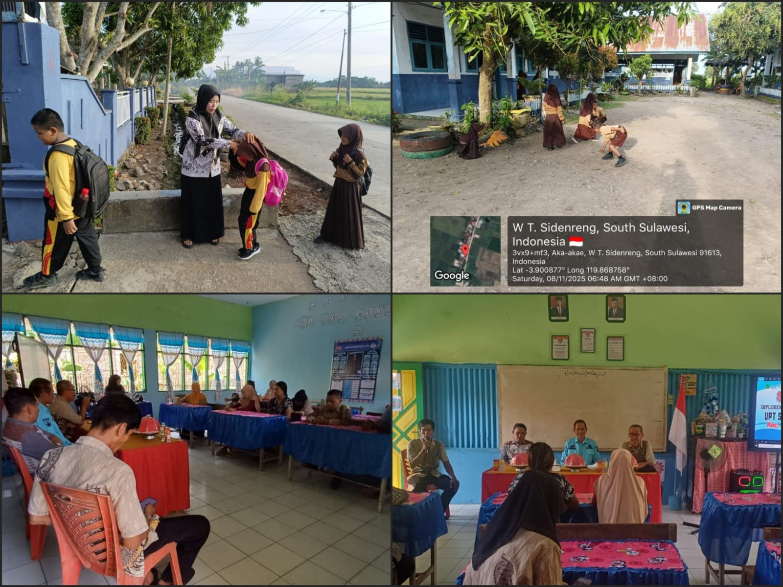 KOSONGSATUNEWS.COM, SIDRAP — Sebelum pelaksanaan Sosialisasi Implementasi Sistem Penjaminan Mutu Internal (SPMI), guru dan murid UPT SDN 7 Watang Sidenreng Kabupaten Sidenreng Rappang terlebih dahulu melaksanakan kegiatan bersih-bersih di lingkungan sekolah.