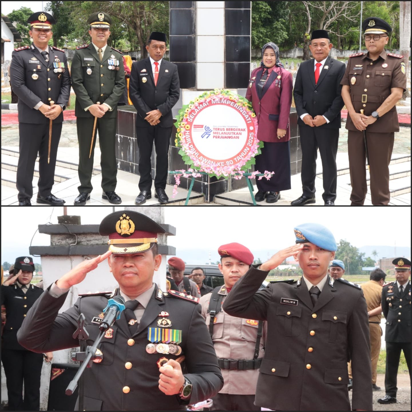 KOSONGSATUNEWS.COM, SIDRAP, -Kepala Kepolisian Resort Sidrap Akbp Fantry Taherong memimpin upacara ziarah di Taman Makam Pahlawan (TMP) Desa Mario Kecamatan Kulo Kabupaten Sidrap, Senin (10/11/25) siang.