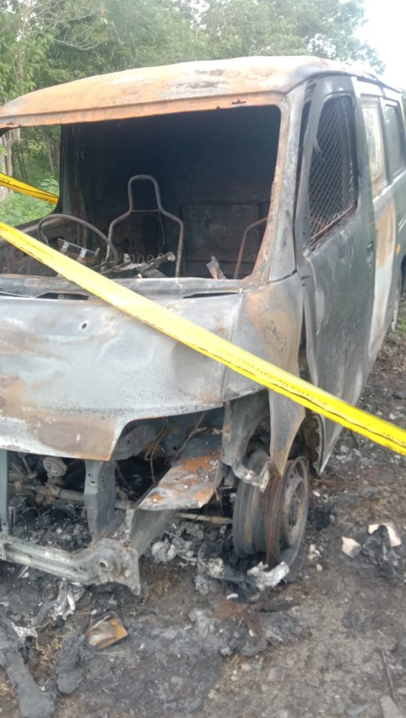Mobil Grand Max yang ada dipelataran palippis tinggal puing-puing nya mami yang sudah gosong , bahkan sudah dipasangi garis polisi