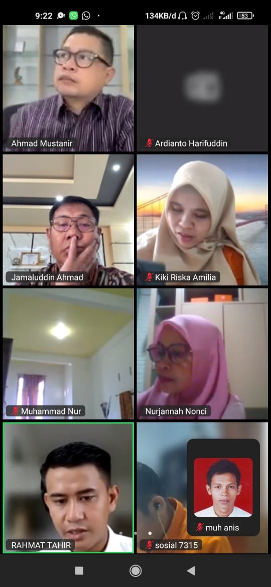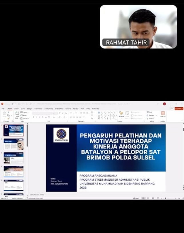 Pelaksanaan seminar dilakukan secara hybrid, di mana mahasiswa mengikuti ujian secara daring melalui Zoom, sementara panitia dan penguji berada di ruang meeting Pascasarjana Gedung FISIP UMS Rappang.