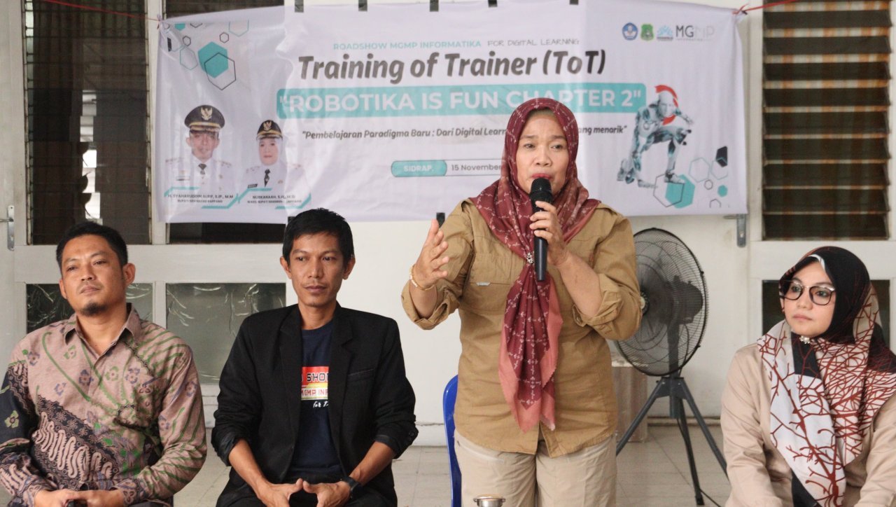 KOSONGSATUNEWS.COM, SIDRAP — Wakil Bupati Sidrap Nurkanaah membuka sekaligus melepas peserta Roadshow program Robotika is Fun yang digelar oleh MGMP (Musyawarah Guru Mata Pelajaran) TIK (Teknologi Informasi dan Komunikasi), Sabtu (15/11/2025).