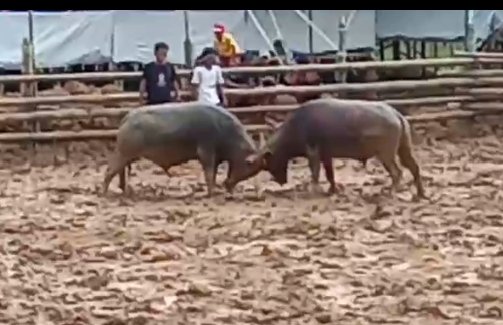 Adu kerbau, salah satu agenda yang dipersiapkan keluarga almarhumah Helena Pongsibidang selama tiga hari pada prosesi upacara Rambu Solo. Ini bukan hanya sekadar pertarungan antara dua ekor kerbau, tapi juga memiliki makna yang dalam.