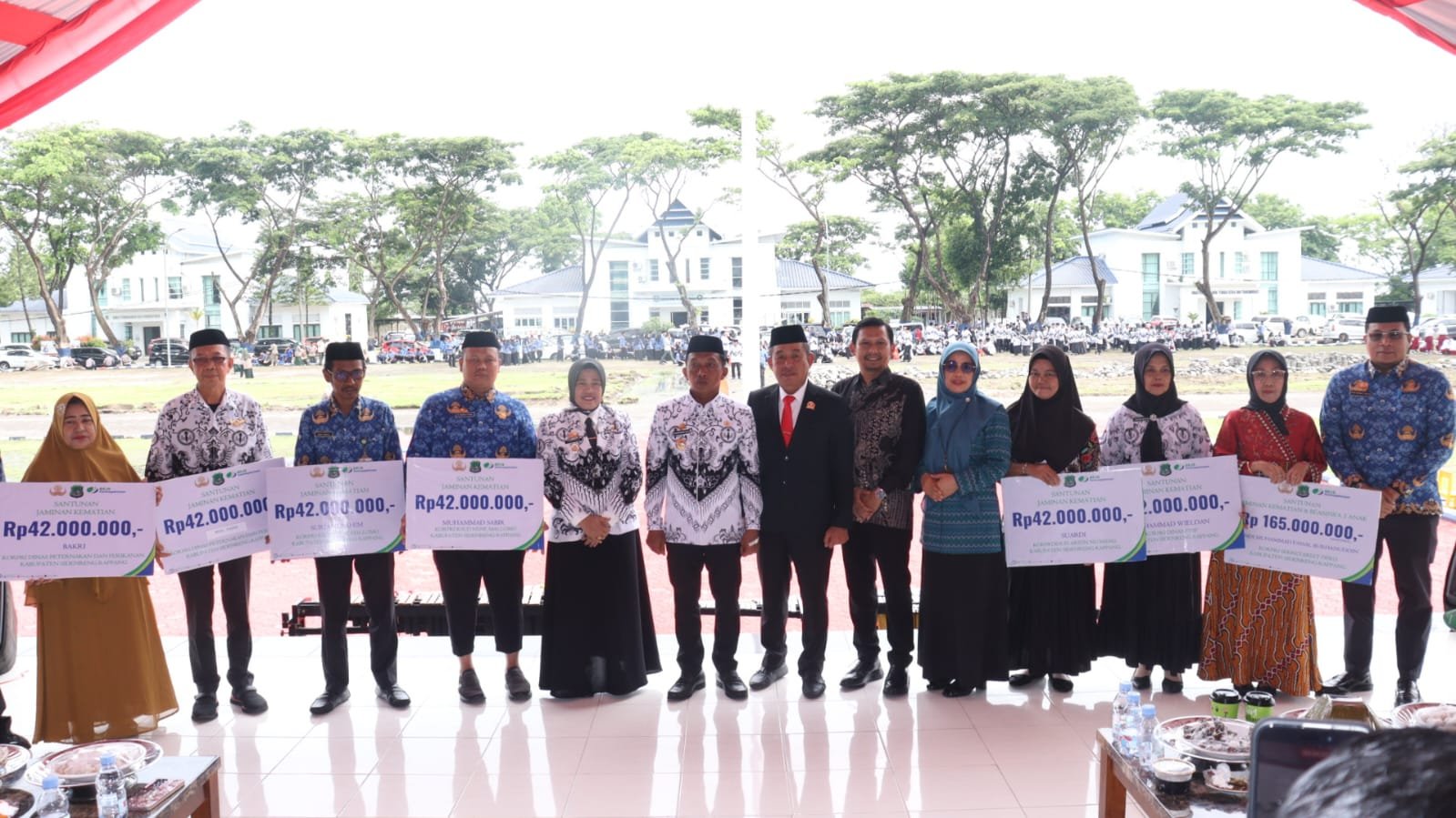 Hadir pula Sekda Sidrap Andi Rahmat Saleh, Ketua Korpri Sidrap, Muhammad Iqbal, Ketua TP PKK Sidrap Haslindah Syaharuddin, Ketua Dharma Wanita Persatuan Sidrap Andi Rieshka Rahmat, perwakilan Kemenag Sidrap, pimpinan instansi vertikal, asisten, staf ahli, kepala OPD, camat, lurah, kepala desa, para guru, dan tamu undangan.