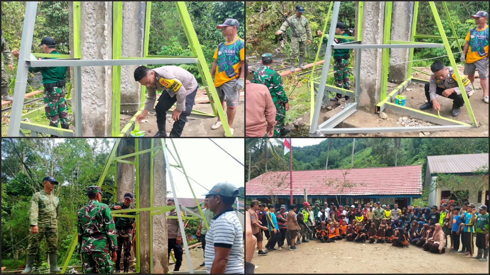 Jembatan gantung itu diketahui sudah lama tidak digunakan karena kondisinya yang tidak layak dan membahayakan warga. Melalui kerja bakti ini, TNI, Polri, pemerintah desa, dan masyarakat bersatu memperbaiki jembatan agar kembali dapat dimanfaatkan oleh para siswa dan guru sebagai akses utama menuju sekolah.